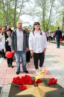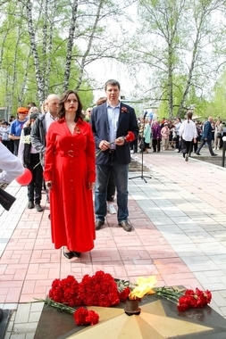 Участники почтили память павших минутой молчания и возложили журавлей и цветы к монументу.