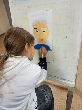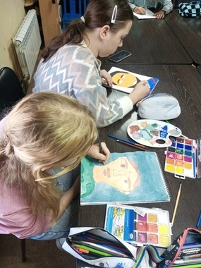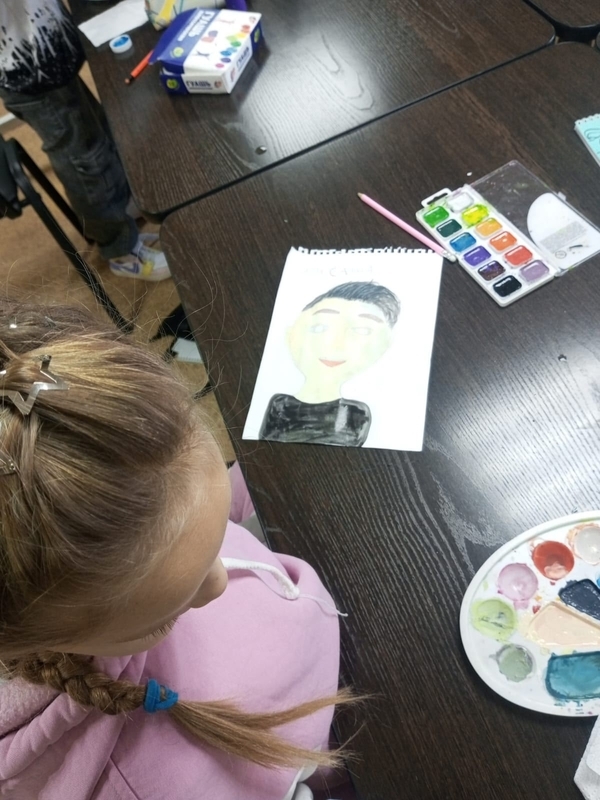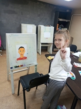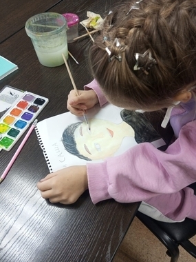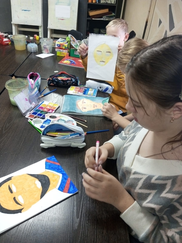 В нашей школе художественного развития ребятишки готовятся ко дню отца. Кто-то рисует папу, кто-то дедушку.